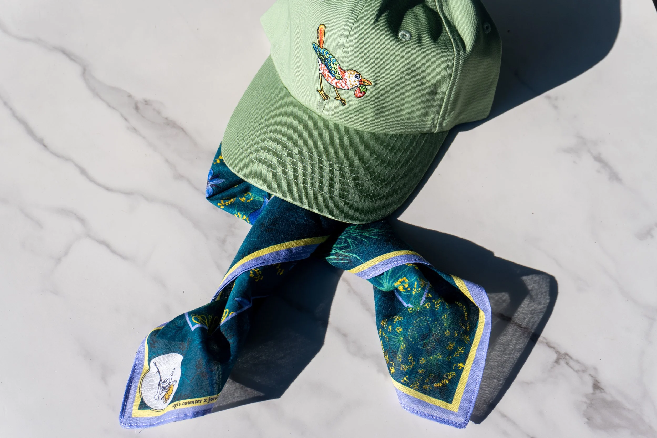 Limited edition Srawberry Bird Baseball Cap & Dill Flower Hankerchief.